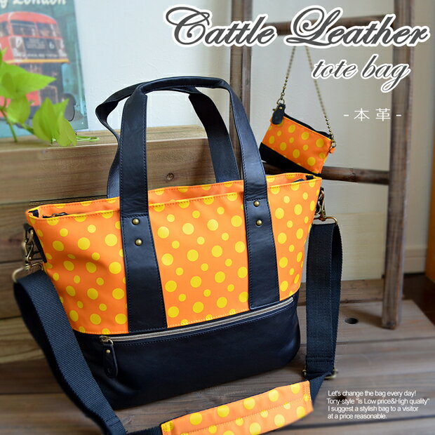 【TONY styleハンドメイドバッグ】TAKUMI本革2WAYトートバッグ<オレンジ・マスタード> ベジタブルタンニン 牛革 男女兼用 メンズ レディース ポケット オシャレ おしゃれ ビジネスバッグ トート 通勤 通学 a4 ショルダー 斜めがけ ドット 日本製 撥水加工
