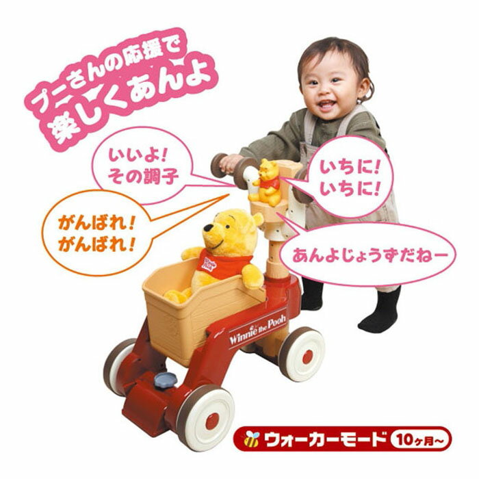 プーさんがたくさんおしゃべりしたり楽しい音楽も入って、遊んでいる中で赤ちゃんのあんよを促進。