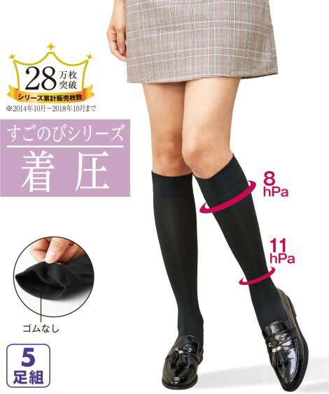 すごのび 足口ゴムなし伝線しにくいソフト着圧ハイソックス5足組 肌着・インナー 大きなサイズ 30代 40代 50代 女性 大きいサイズ レディース